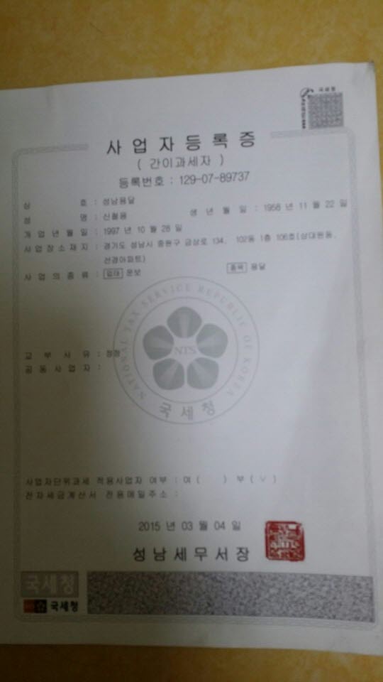 사업자등록증 페이지 정보 작성자 최고관리자 작성일16-04-06 11:43 조회224회 댓글0건 관련링크 이전글 다음글 목록 답변 본문 사업자등록증 댓글목록 등록된 댓글이 없습니다. 이전글 다음글 목록 답변